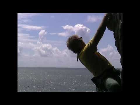 This film meets sea-cliff climbing legend Pat Littlejohn on an ascent of Zodiac at St Govan’s Head. While traversing above a turbulent sea Pat shares his philosophy on climbing exploration and adventure, which has been a thread throughout his prolific and prodigious climbing life. He is joined by south Wales activist Tony Penning who seems always game for a laugh – if only a nervous one. (A slice of memorabilia since – a year after filming – a huge rockfall altered the St Govan’s landscape including Zodiac.)